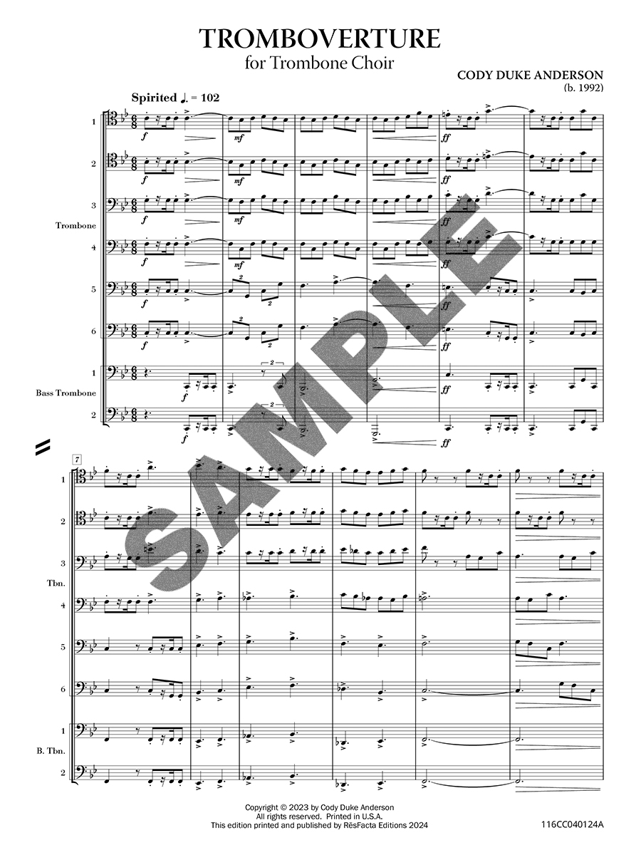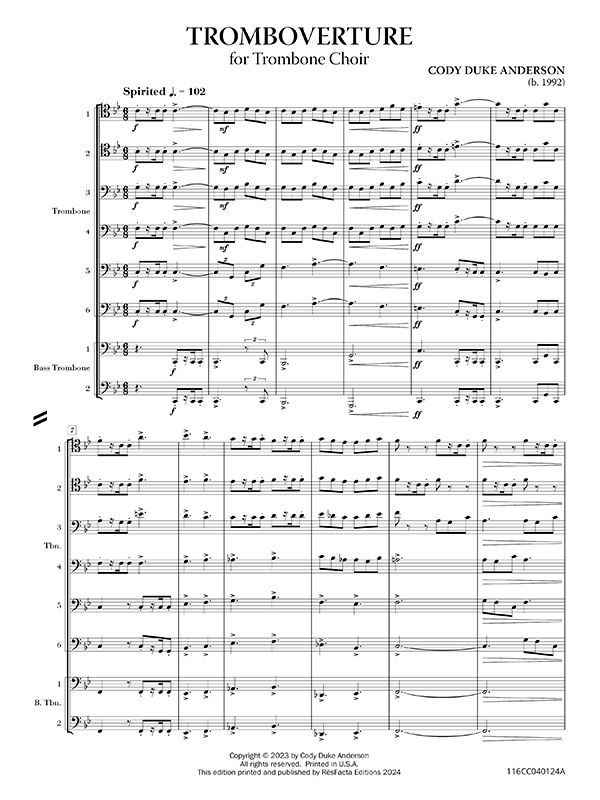 Tromboverture is celebration of the trombone choir. Beginning with a lively and joyous motif, it dances among the players. Transitioning to the middle segment, a grand melody emerges, evoking strength and confidence. The concluding section merges the earlier themes, culminating in a vibrant and triumphant finale!