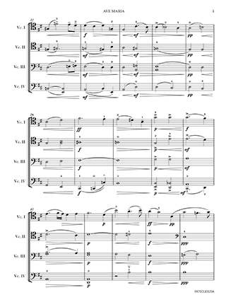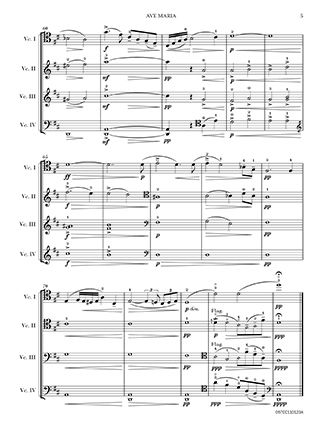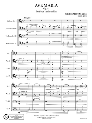 In Ave Maria, Fitzenhagen skillfully adapts the melody of the prayer for the cello ensemble, allowing each cello to express different facets of the music. The four cellos blend harmoniously to create a rich and sonorous texture, which is well-suited to the devotional nature of the prayer. Fitzenhagen's arrangement is known for its lyrical and expressive qualities, which allow the performers to convey a deep sense of reverence and spirituality.