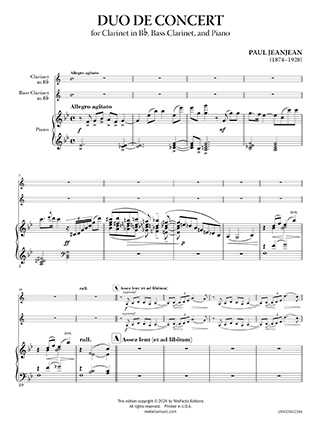 Duo de Concert by Paul Jeanjean is a charming and dynamic piece written for clarinet, bass clarinet, and piano. Jeanjean, a prominent French composer and clarinetist, is well-known for his technical studies for clarinet, but in this work, he explores the chamber music format with a focus on the interplay between the clarinet and bass clarinet, supported by the piano.