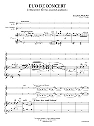 The Duo de Concert alternates between lyrical passages and fast, intricate sections, demanding precision, agility, and expressive playing from both the clarinet and bass clarinet. The interaction between the two clarinets is dynamic, featuring playful exchanges, intricate harmonies, and moments where they merge into a single, blended sound. The piano part adds harmonic richness and rhythmic drive, providing both support and contrast to the clarinet lines.