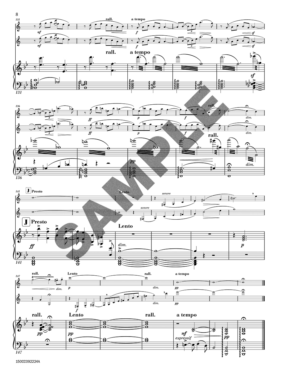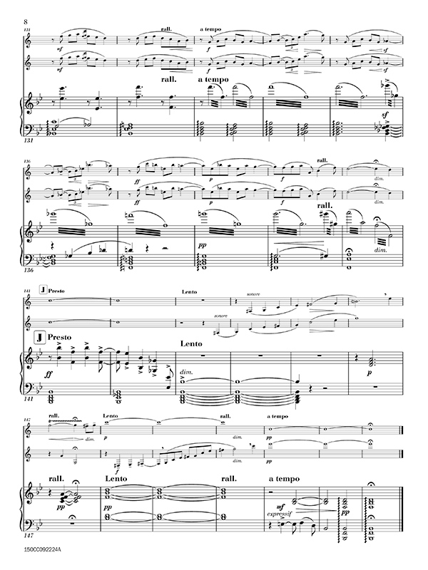 The piano serves as both an accompanist and a partner, providing harmonic support and rhythmic drive. Jeanjean's writing for the piano is expressive, allowing moments of lightness and intensity to shape the overall structure of the piece."