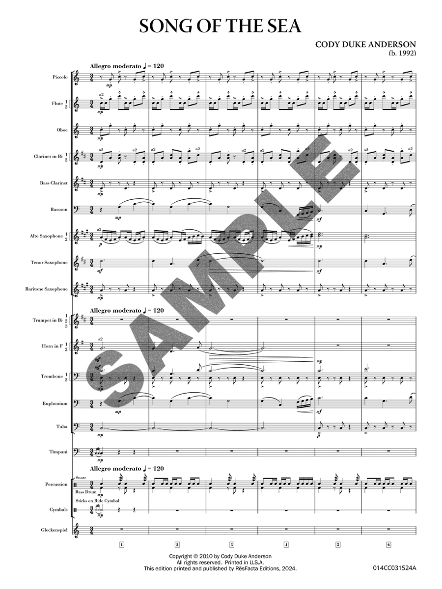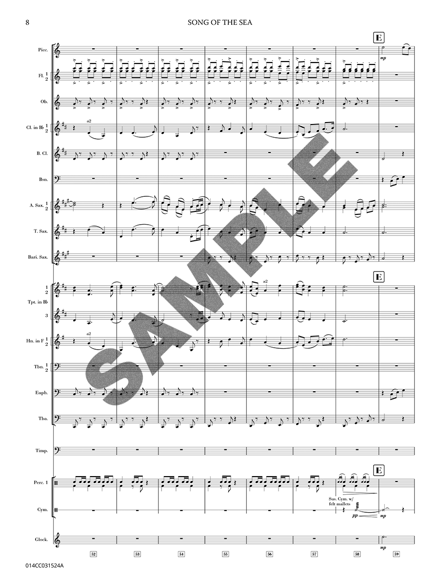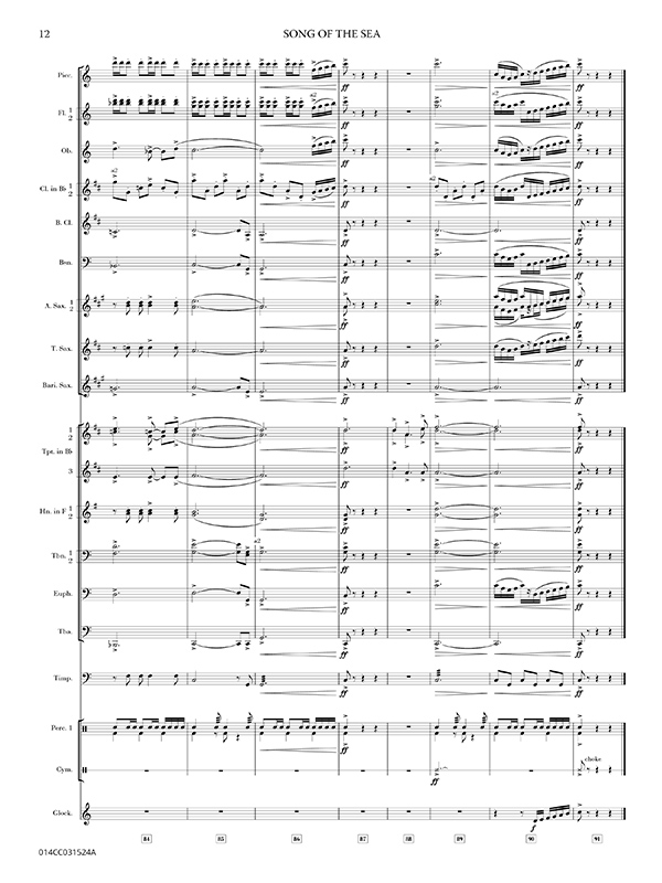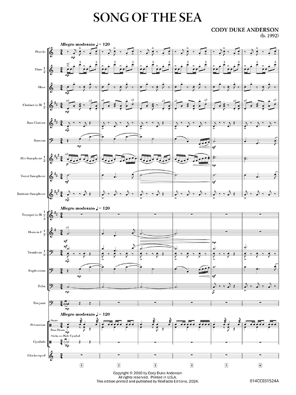 Song of the Sea is a short and simple work meant to evoke the joy of a sailor as they navigate the sea, drifting through light playful waves on a clear and beautiful day. It blends a march-like feel with longer melodic phrasing in order to represent some of the more rigorous elements of sea life with the wistful yearning for adventure.