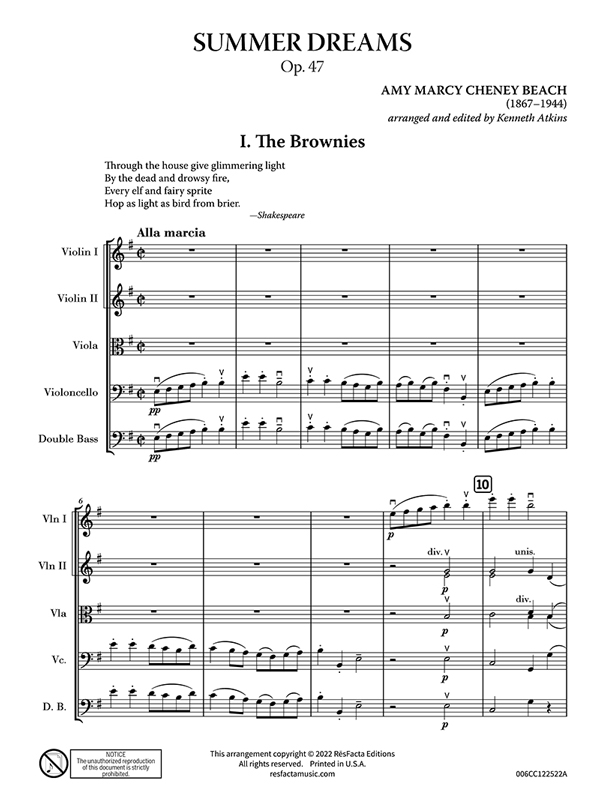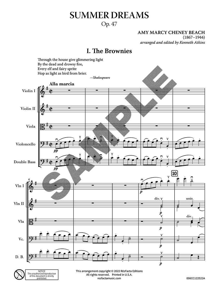 A suite of six evocative pieces by American composer, Amy Beach. Originally for piano duet, arranged for string orchestra.