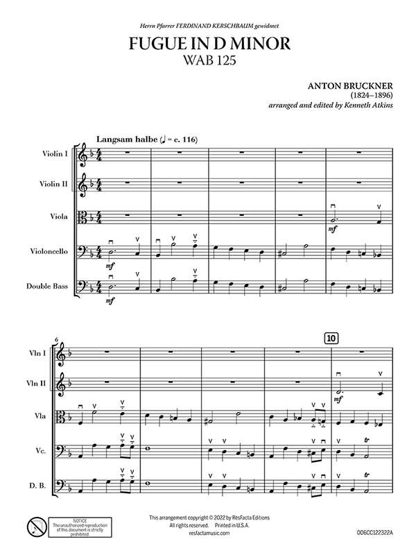 Anton Bruckner arranged and edited by Kenneth Atkins Catalogue number 006CC122322A