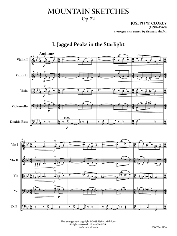 Mountain Sketches is a three-movement work originally composed for organ by American composer, Joseph W. Clokey in 1924. The piece is inspired by the natural beauty of the mountains, and each movement captures a different aspect of that beauty.