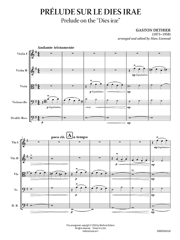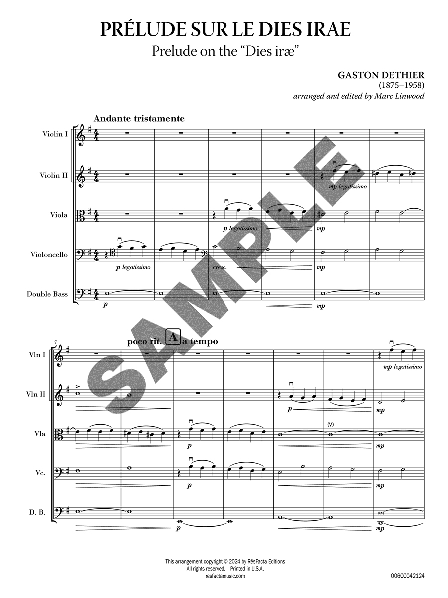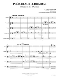 Originally written for organ by the Beglian-American composer, Gaston Detheir, “Prélude sur le Dies Irae” is a meditation on the “Dies iræ” motive from the Gregorian plainchant typically found in a Requiem mass. Marked “Andante tristamente” (moderately slow, sad), Dethier's setting is a hauntingly mournful yet serene and beautiful treatment of the traditional “Dies iræ” theme.