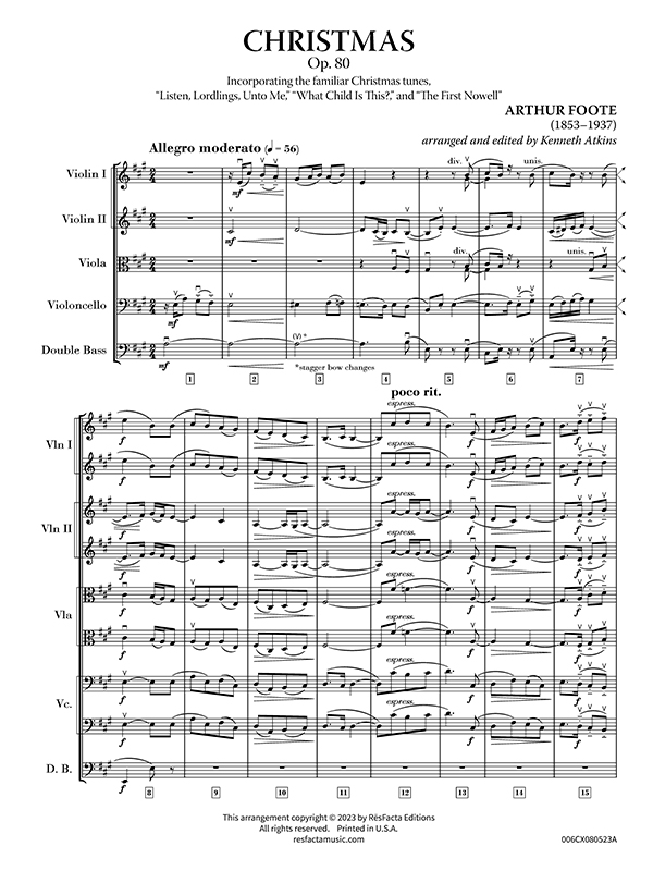 Originally written for organ by American composer, Arthur Foote, "Christmas" utilizes rich harmonies, majestic melodies, and intricate textures to convey a sense of warmth and grandeur. Foote's composition skillfully blends traditional Christmas themes "Listen, Lordlings Unto Me," "What Child Is This?" and "The First Nowell" with his own creative interpretation, resulting in a piece that is both evocative and uplifting.