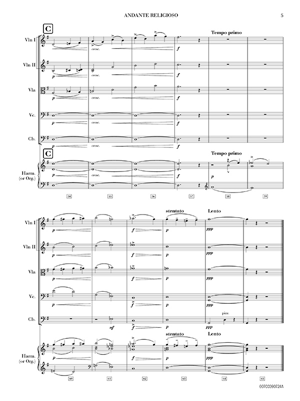 Frontini’s skillful use of long, sweeping phrases, subtle dynamics, and expressive melodies allows the composition to evoke both spiritual contemplation and emotional warmth. The music unfolds with a balanced and peaceful dialogue between melody and harmony, emphasizing emotional depth over technical virtuosity. The interplay between the strings and harmonium enhances the sense of prayerful introspection, making Andante Religioso well-suited for both concert performances and religious or ceremonial settings.